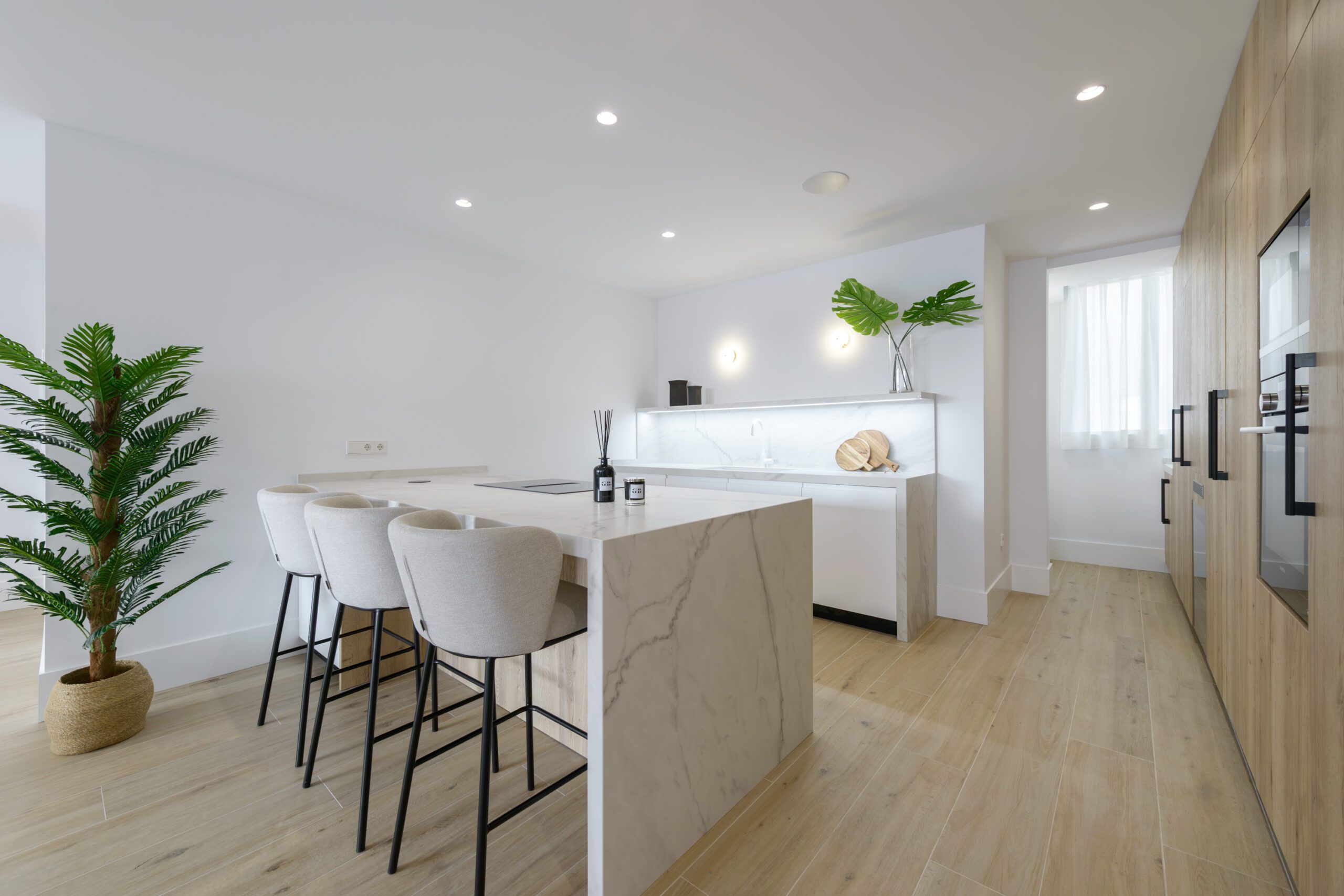 La vivienda ofrece tres dormitorios, dos de ellos con baño en suite, además de un baño completo adicional. Su diseño contemporáneo y su cuidada distribución aportan amplitud y confort, con una cocina y un salón-comedor pensados para un estilo de vida moderno.
